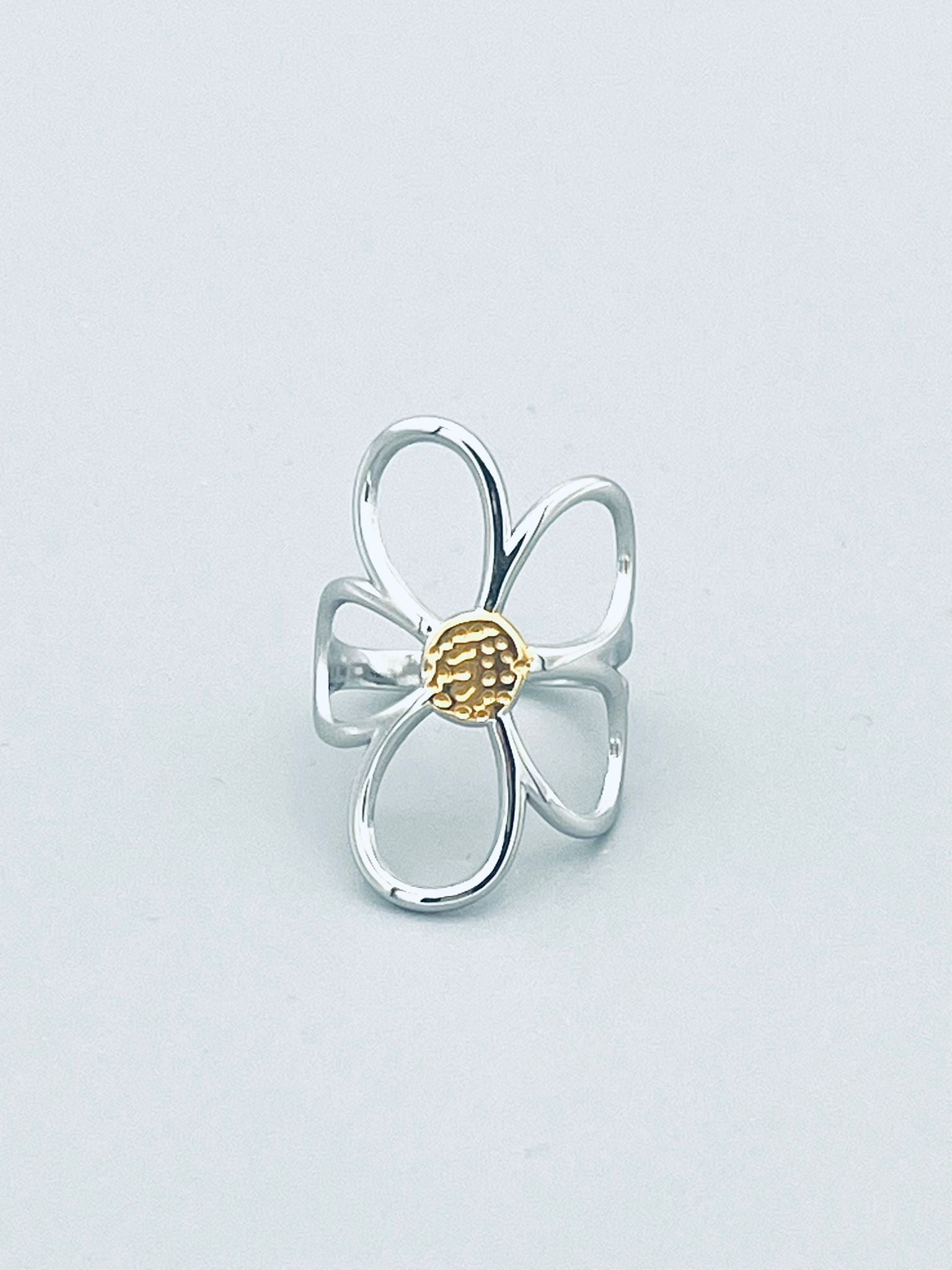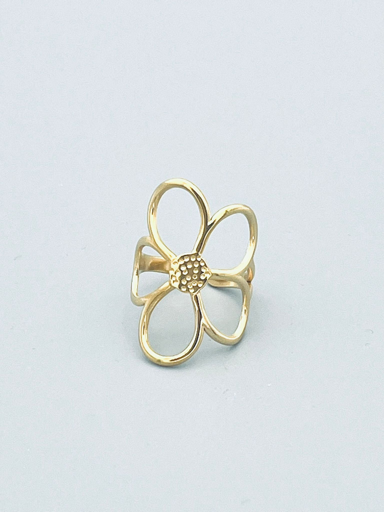 Deze ring met een grote bloem in goud- of zilverkleurig roestvrij staal. Een echte statement ring die liefde, kracht en zachtheid uitstraalt.