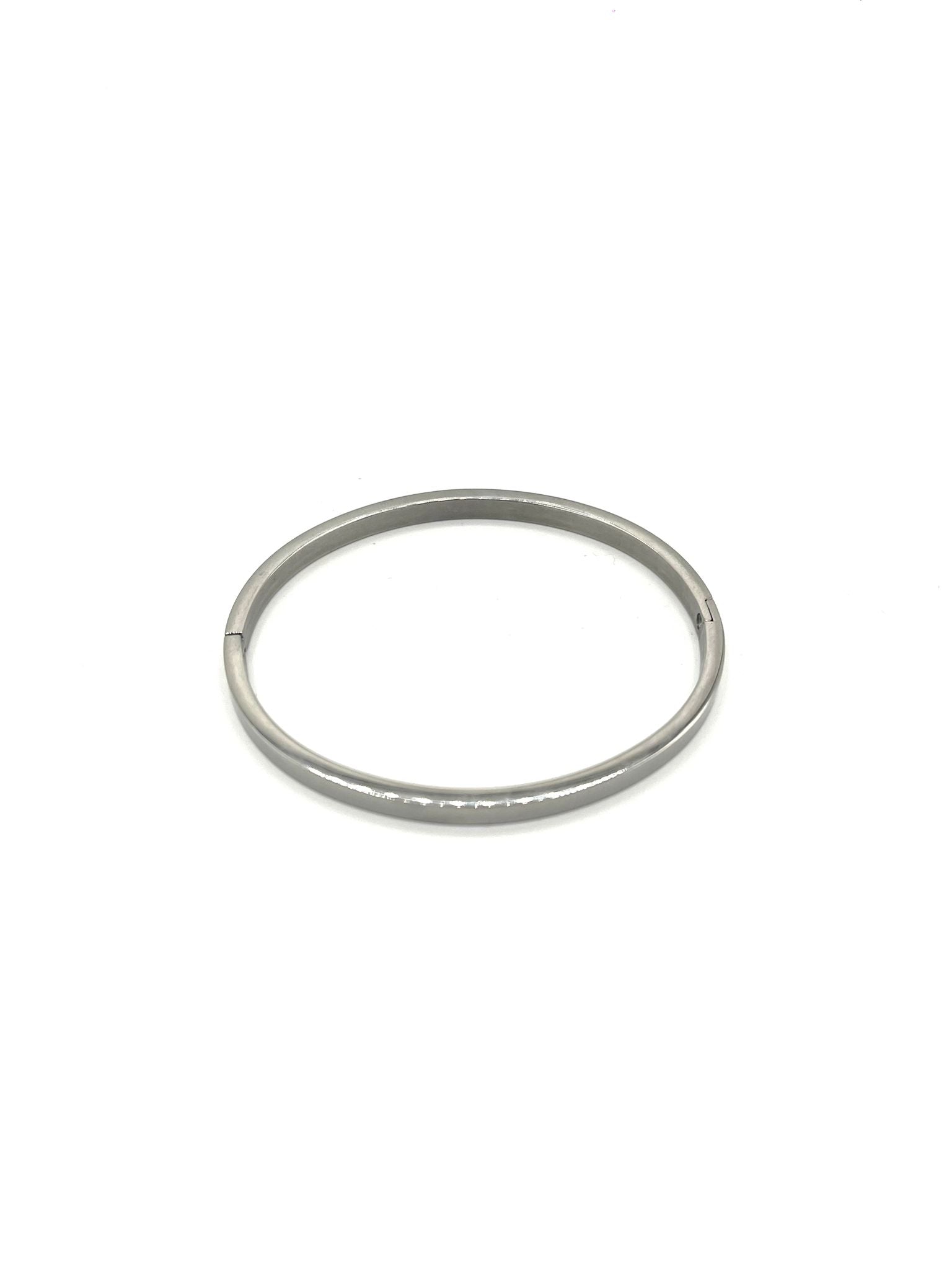 Voeg een klassiek accent toe aan je look met deze zilverkleurige bangle van roestvrijstaal. Deze minimalistische bangle is perfect voor een stijlvolle armparty of om solo te dragen als charmant statement.
