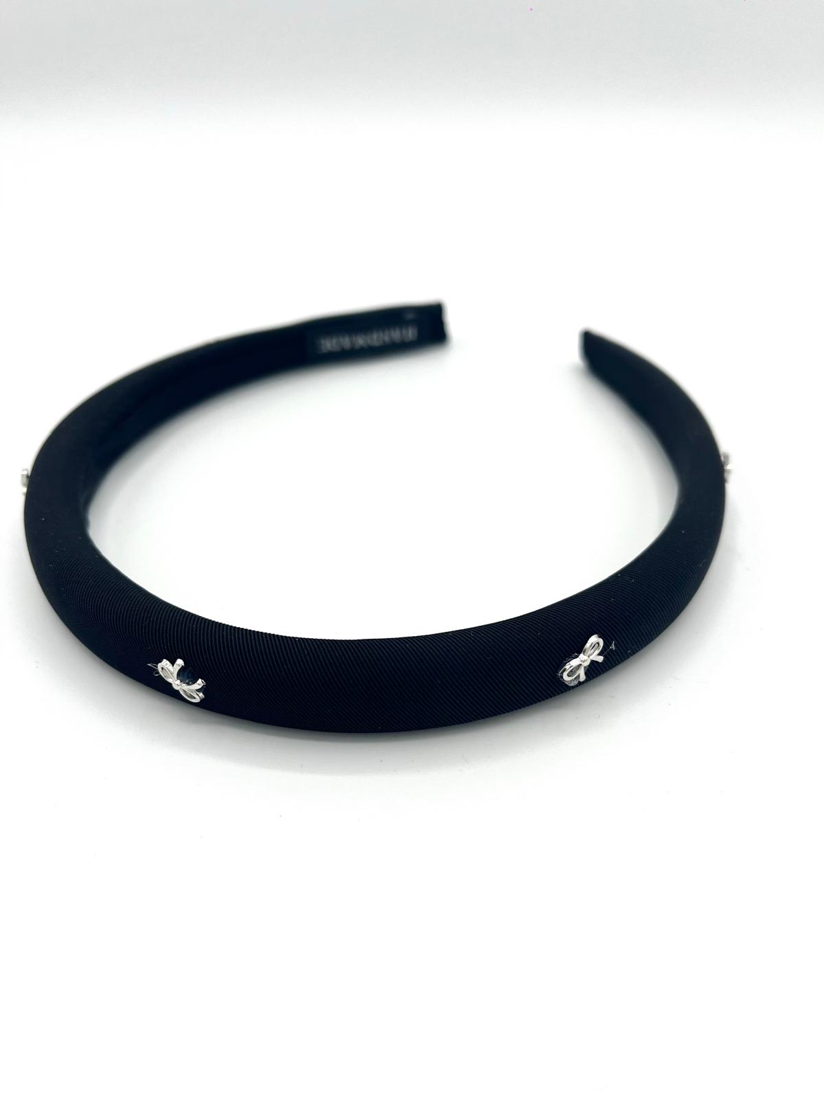 Deze zwarte haarband met zilverkleurige strikjes is de perfecte touch voor bij elke look. Het smalle design geeft een fijne uitstraling, terwijl de speelse strikjes zorgen voor een lieve en stijlvolle vibe. Ideaal voor een feestje, speciale gelegenheid of gewoon om je dagelijkse outfit iets extra’s te geven.